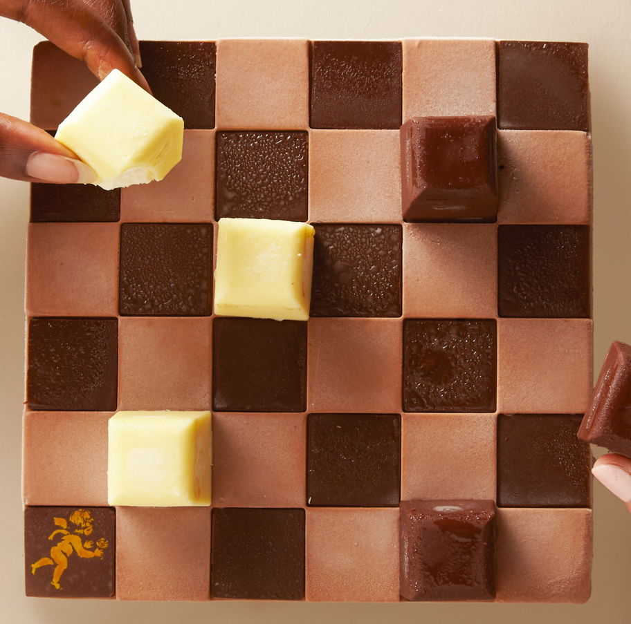 Festeggia le festività di fine anno con eleganza grazie alla nostra creazione esclusiva in edizione limitata: il Gioco. Questo dessert eccezionale mette in risalto il nostro gelato al cioccolato ecuadoriano, adagiato su un croccante inserto di biscotto pralinato e punteggiato da tessere di cioccolato che evocano una scacchiera. Questo dessert gelato è accompagnato da otto mini cubetti gourmet che assomigliano a pedine di gioco: quattro al cioccolato fondente guarnite con gelato alla nocciola e quattro al cioccolato bianco che avvolgono il nostro gelato Fleur de Lait.